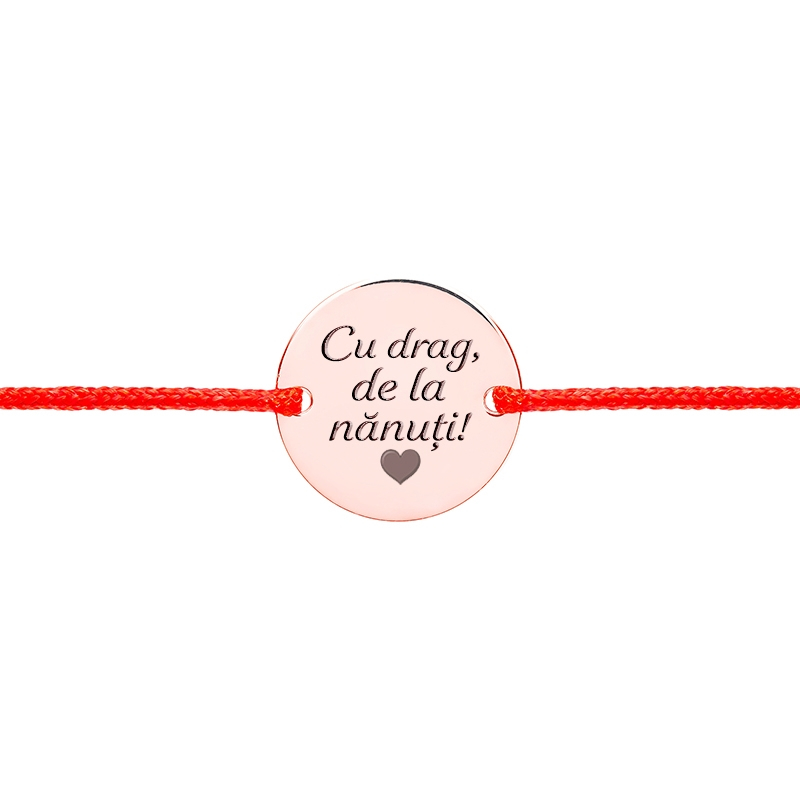 Bratara Argint snur si banut de 14.5mm, personalizata cu mesaj, este un accesoriu elegant si simplu, realizat din argint de calitate superioara. Bratara este compusa dintr-un snur impletit manual si un banut mic din argint, care pot fi personalizate cu un mesaj special.